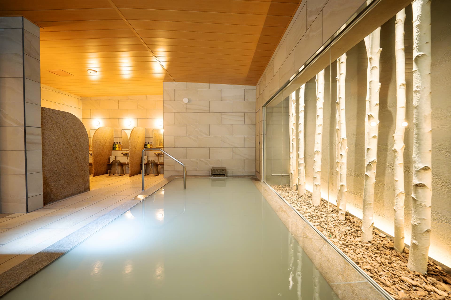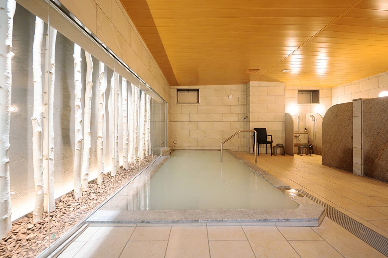While relaxing at the onsen, you can gaze at the white birch trees.